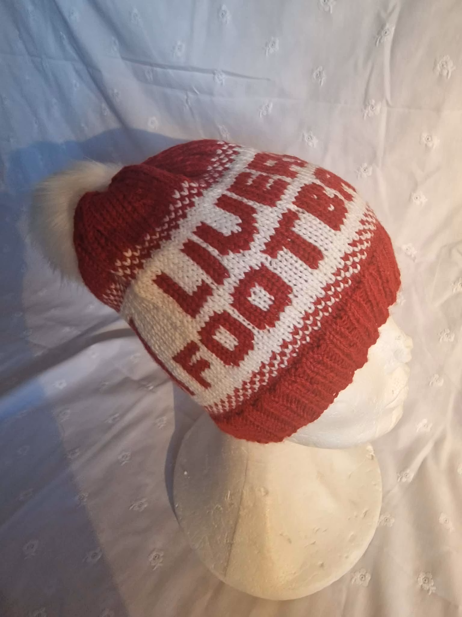 Kjempeflott supporterlue med LIVERPOOL FOTBALLCLUB innstrikket.