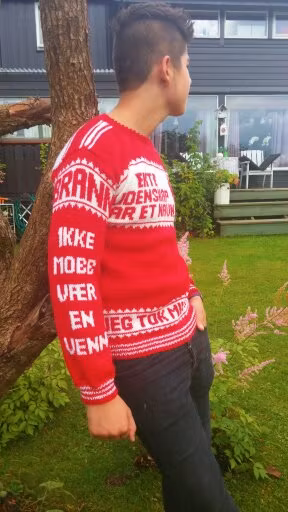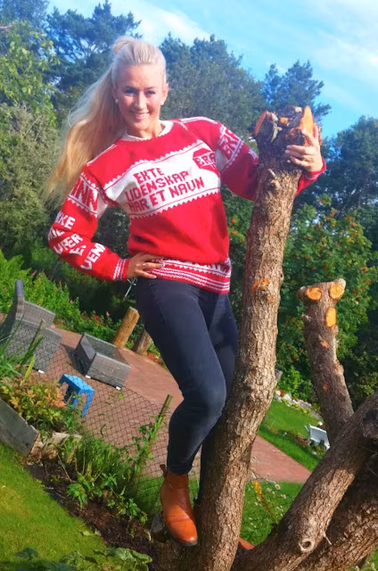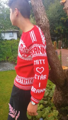 Mønster på ein flott supportergenser som passer både mann og dame, den er strikket i garn med strikkefasthet 23 på 10 cm.