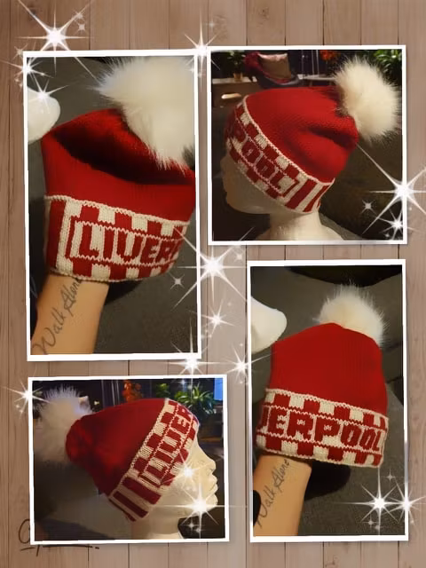 Knallflott supporterlue til den røde supporteren. Den er strikket i garn med strikkefasthet 23 på 10 cm.